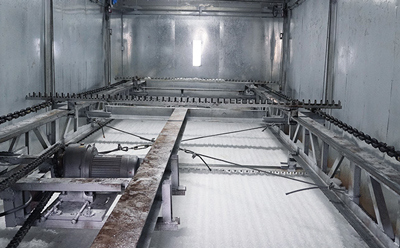 冰勛制冷混凝土冷卻降溫解決方案包含大型片冰機,冰塊生產(chǎn)后通過重力掉入耙冰區(qū),再通過自動耙冰系統(tǒng)將冰塊輸送到攪拌倉,中間配置冷藏儲冰庫用于冰塊的暫存。